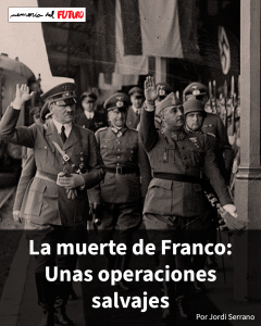 El día 28 se hacen público otro parte médico: parálisis intestinales, trombosis venosa mesentérica: situación crítica. Las «heces en forma de melena» vendrían poco después. Fueron innumerables los comentarios jocosos acerca de esta forma de comunicar la agonía. Don Juan Carlos asumía las funciones de Jefe de Estado por un decreto del día 30 de octubre. El 3 de noviembre a Franco le falta la respiración y tiene una hemorragia gástrica. Comienza a expulsar la sangre por vía anal. Las condiciones son inconcebibles. Franco está en el Pardo en unas condiciones de hospital de campaña. Dado el estado del paciente los médicos se enzarzan en una gran pelea sobre si vale la pena operar o no. Incluso su hija no quiere operarlo. Al final lo operan. Deciden trasladarlo a un hospital, pero no hay tiempo. La sangre mancha la cama y las alfombras. Lo trasladan en una camilla al botiquín del regimiento, un espacio deprimente a unos 200 metros. Dos ministros tienen que ayudar a cambiar la funda del colchón lleno de sangre. Los ayudantes tienen que sostener a mano las lámparas que acercan al bisturí del Dr. Hidalgo Huerta, que es quien abre el vientre del Generalísimo. El Pardo se queda prácticamente a oscuras para concentrar allí toda la energía. A pesar de ello, el bisturí eléctrico falla. Por fin, el Dr. Hidalgo Huerta liga la arteria rota y la hemorragia cesa. Franco ha perdido la consciencia. Nunca más volverá a recuperarla, excepto, quizá, para tener algunos momentos, poquísimos, de lucidez.