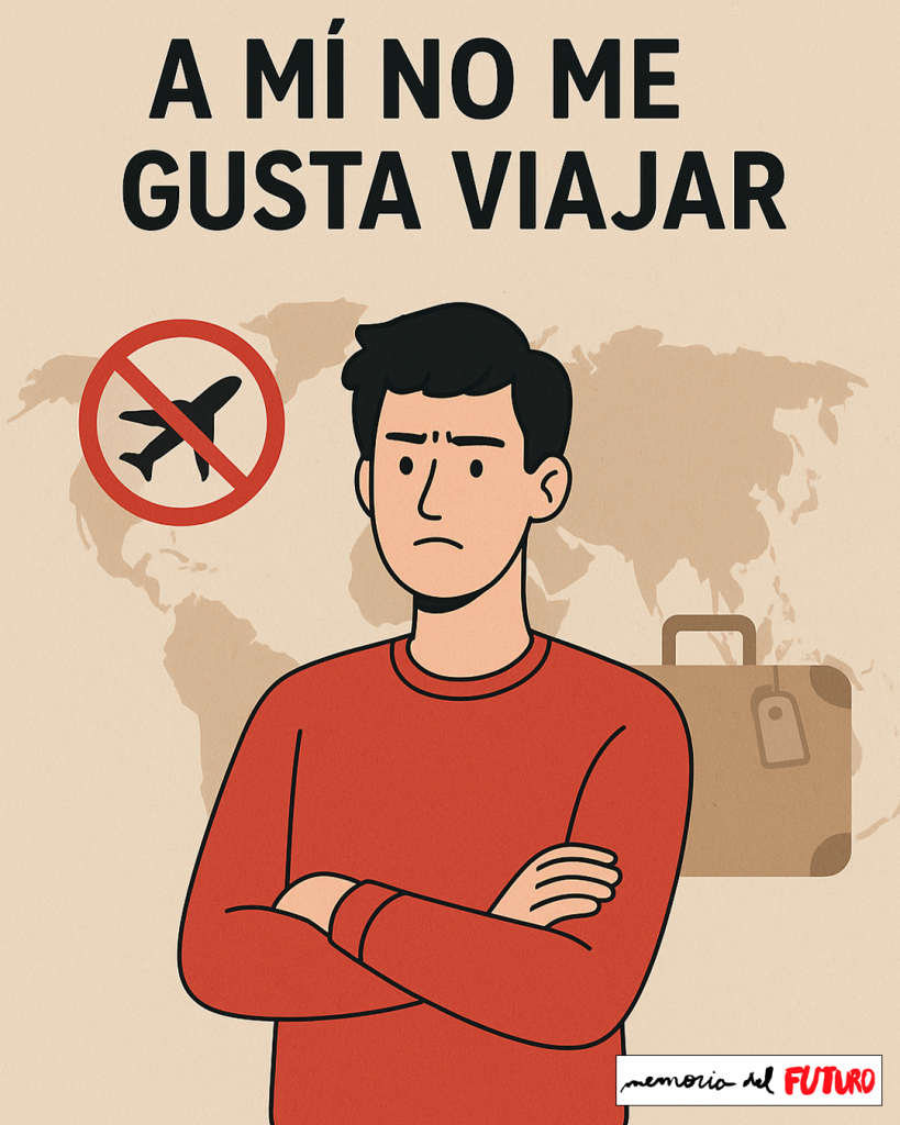 Todo el mundo quiere viajar y no entiendo por qué. Dicen que para ver mundo. Yo viajo por mi mundo interior y me sobran kilómetros. Viajando lo que haces es crear postales, hacer fotos y lo que es peor hacer postales contigo incorporado que es en realidad un selfie. Una gran horterada. Se trata del viaje del yo. Yo en Nueva York, yo en las cataratas del Niágara, yo en París en Notre Dame, yo en el Coliseo de Roma (Anfiteatro Flavio) o yo en la selva amazónica.